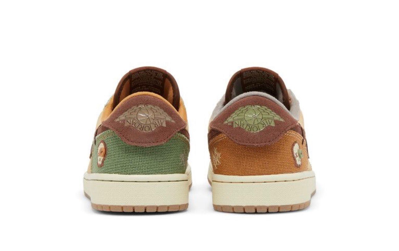 The Zion Williamson x Air Jordan 1 Retro Low OG ‘Voodoo’ shares a New Orleans-inspired theme with a companion Zion 2 colorway from June 2022. Braided rope laces secure the upper, featuring beige suede quarter panels and a brown suede toe box. Burlap-like overlays feature raw edges and mismatched color blocking in light brown, Oil Green and Fossil. In addition to exposed deco stitching, unique accents include an inverted mini-Swoosh on the forefoot and an embroidered voodoo-doll graphic on the lateral heel. An upside-down Wings logo is stamped on the brown suede heel tab, which lifts up to reveal mismatched ‘Voodoo’ and ‘Zion’ graphics on the interior side.