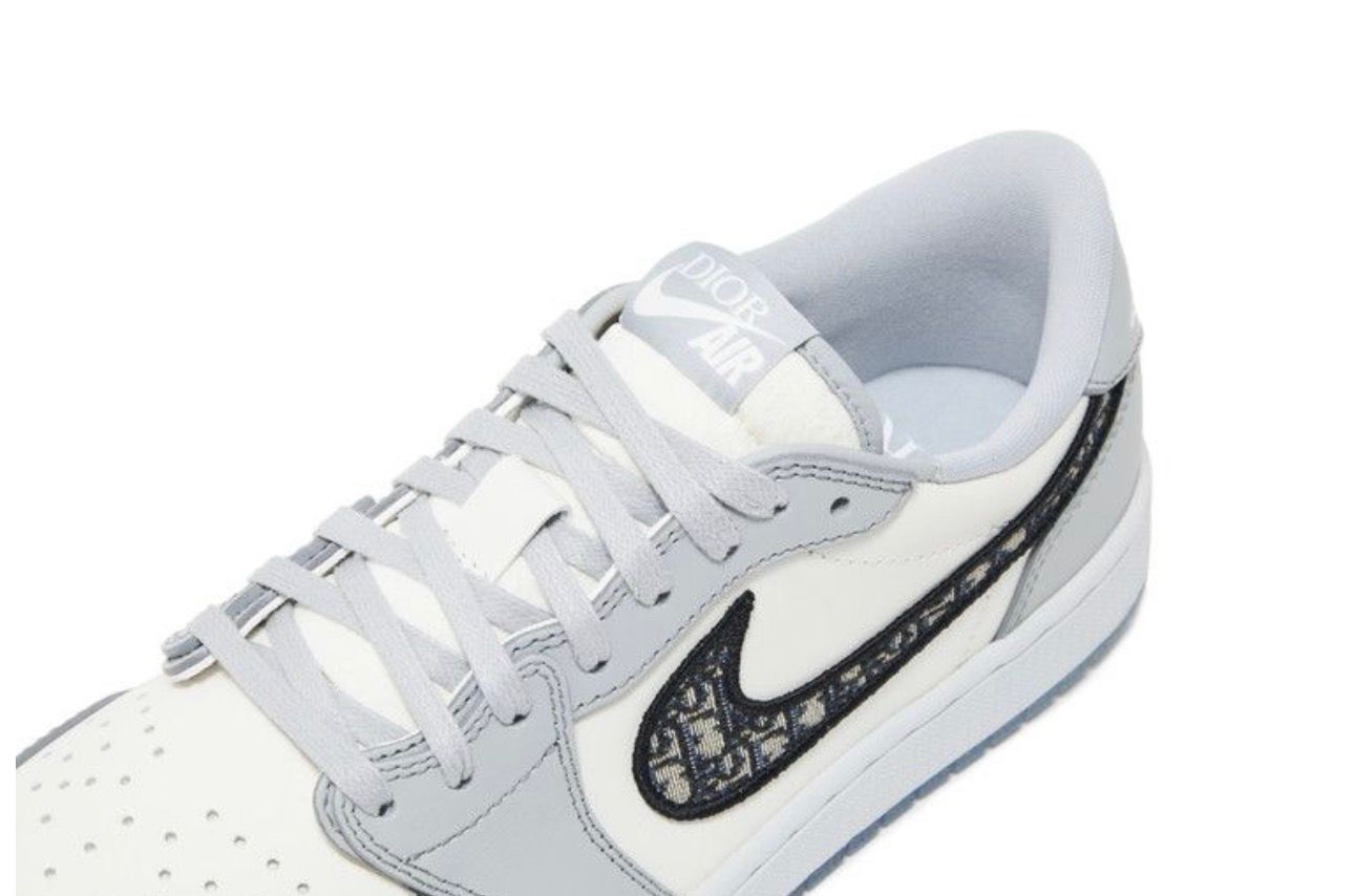 Launching as part of a larger collection with the esteemed Parisian fashion house, the Dior x Air Jordan 1 Low sports a simple two-tone color scheme on the upper, featuring a white Italian leather base with subtle grey leather overlays. Branding elements include a Dior Air woven tongue tag, Dior Oblique jacquard Swoosh and a Dior Wings logo on the heel tab. The made-in-Italy kicks are finished with translucent outsoles revealing additional branding hits underneath.