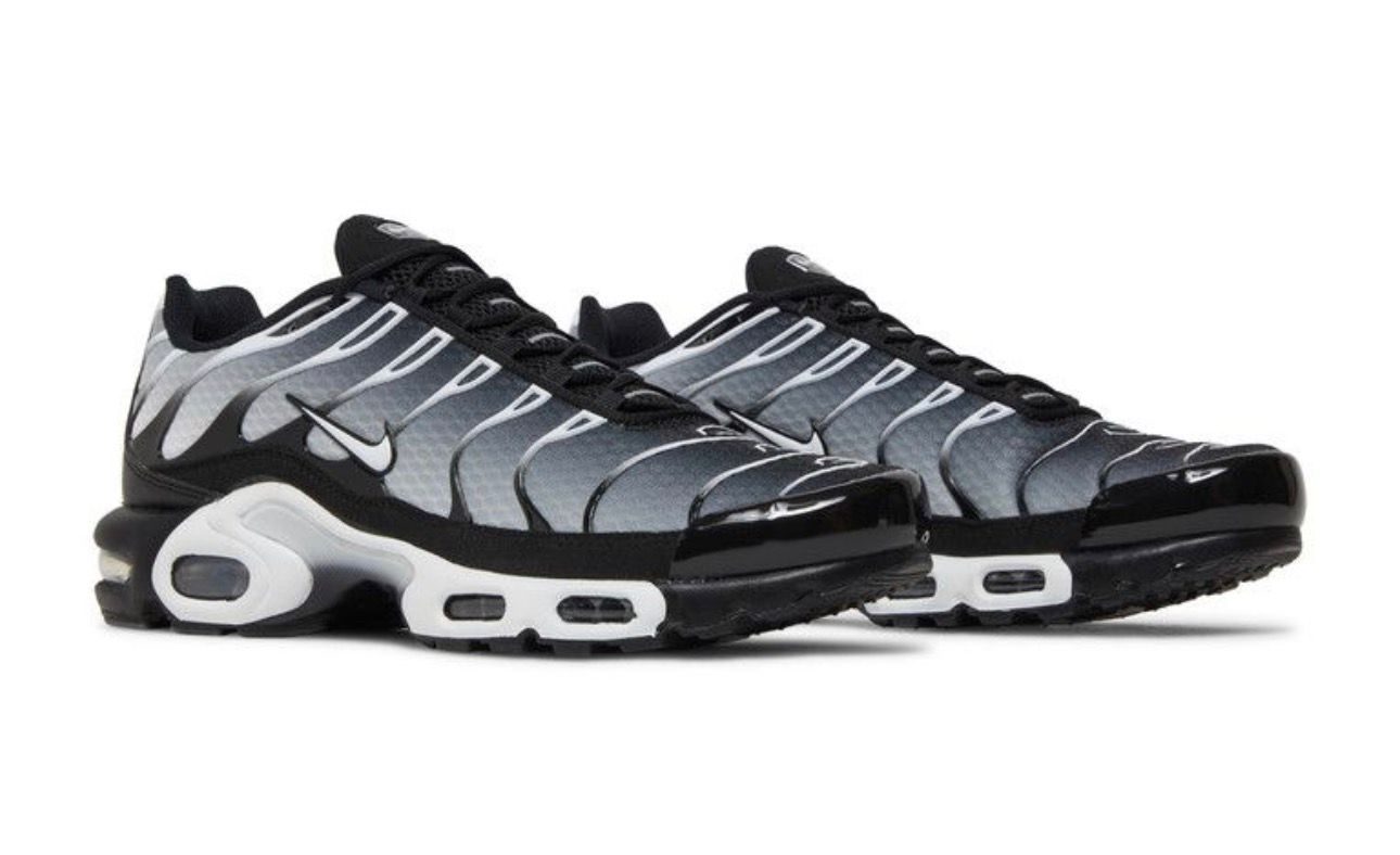 The Nike Air Max Plus 'Black Metallic Silver' combines iconic design with performance-driven features. Its sleek black upper enhanced with metallic silver accents provides a modern, bold look. Equipped with Tuned Air cushioning, it delivers targeted support and exceptional comfort for all-day wear. The durable rubber outsole ensures reliable traction and long-lasting wear, making this sneaker an ideal choice for both street style and active use. Expertly crafted, it balances innovation with timeless aesthetics.
