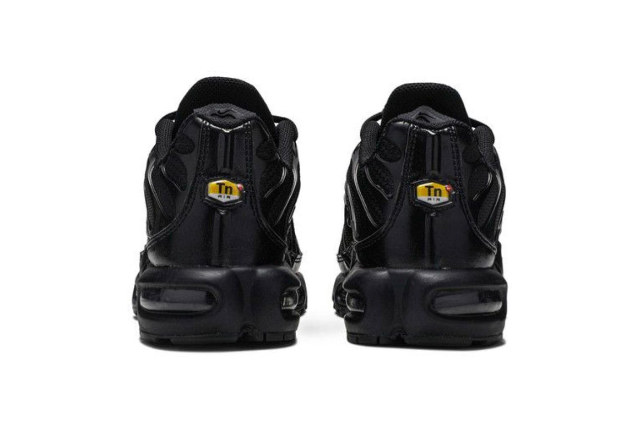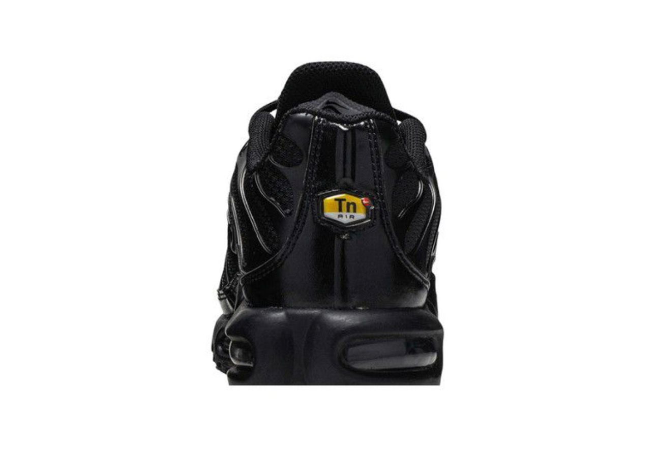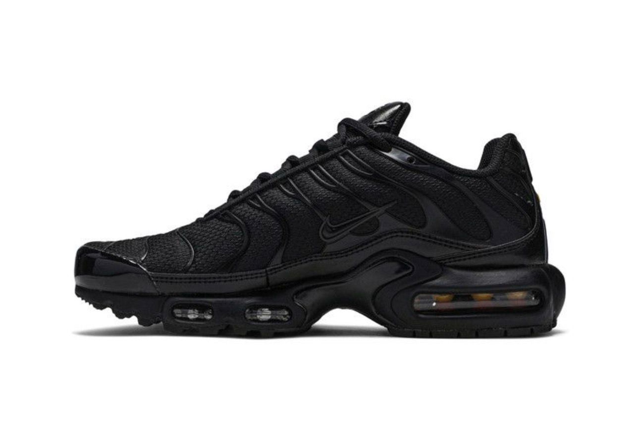 The Nike Air Max Plus is one of several hybridized models that combines fundamental and distinctive characteristics from the brand's most coveted styles. This 'Triple Black' iteration is treated with a monochromatic theme to emphasize its cutting-edge appeal. The graphic-style textile upper is injected with undulating TPU stripes and structured with leather panels at the base and heel. Classic logos on the tongue and heel call out the innovative Tuned Air tech underfoot.