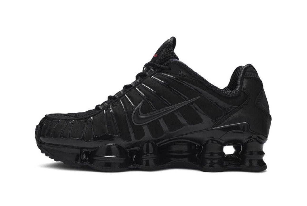 The Nike Shox TL 'Metallic Hematite' was made available July 2019 in a triple-black colorway to give the original silhouette a nocturnal vibe. The next sneaker in the collection after the 2000 release of the Shox R4, the Shox TL from 2003 includes a padded, mesh-lined collar and molded upper cage for lightweight support. Mesh segments deliver breathability, and the shoe's distinctive feature—full-length Shox columns—create responsive cushioning from heel to toe.