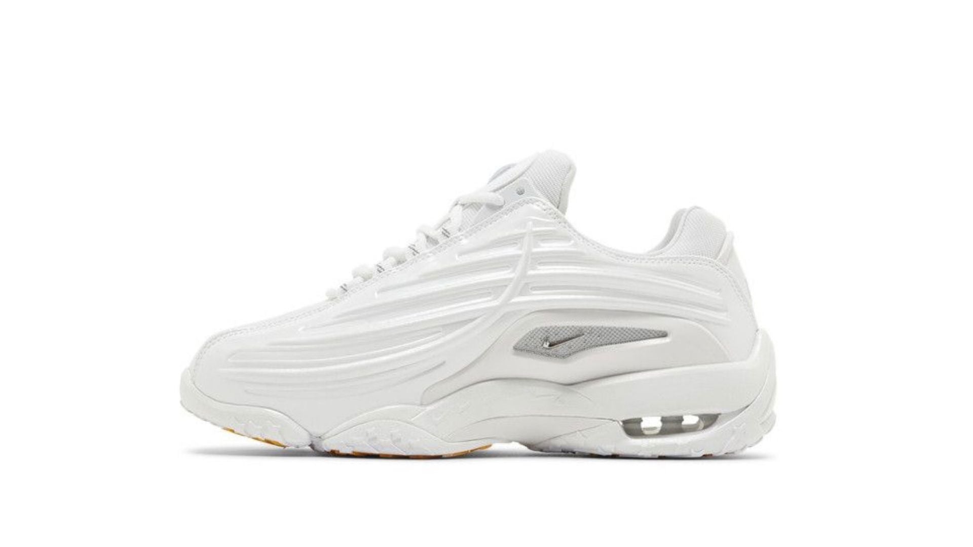 The NOCTA x Nike Hot Step 2 'White' brings a monochrome finish to the lifestyle sneaker designed in partnership with Drake's Nike sub-brand. Crafted from white synthetic leather, the upper features a reflective finish with 3D molded sides. A jeweled NOCTA emblem appears on the tongue, while a chrome mini-Swoosh decorates the mesh panels that appear along the midfoot and toe. Lightweight cushioning arrives via a matching white foam midsole with a visible Air-sole unit in the heel. Underfoot, the G-Tek outsole provides durable traction.