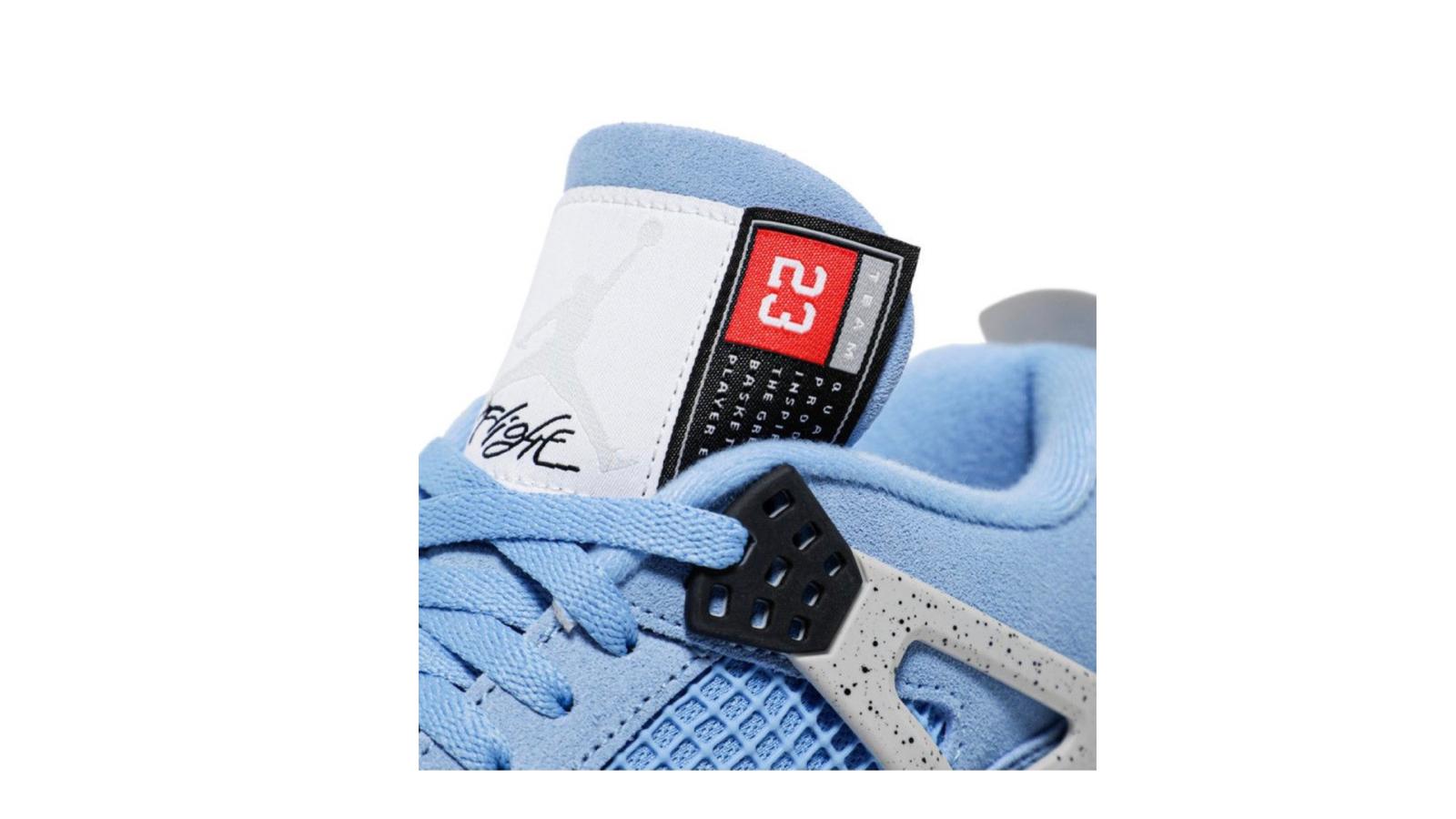 The Air Jordan 4 Retro ‘University Blue’ updates the classic silhouette with a suede upper in a familiar hue inspired by Michael Jordan’s UNC alma mater. The bright blue palette is contrasted by a speckled grey finish on the sneaker’s supportive wings and back heel, featuring a raised Jumpman icon in black. Secondary Jumpman branding adorns the woven tongue tag, designed to mimic a jock tag that typically appears on the bottom hem of Jordan jerseys.